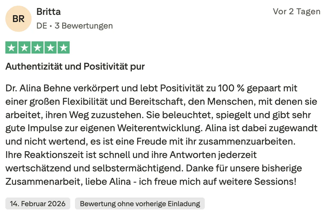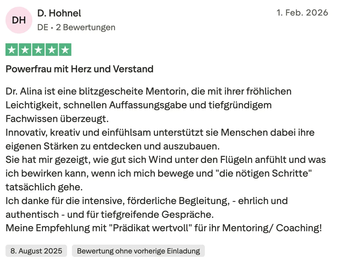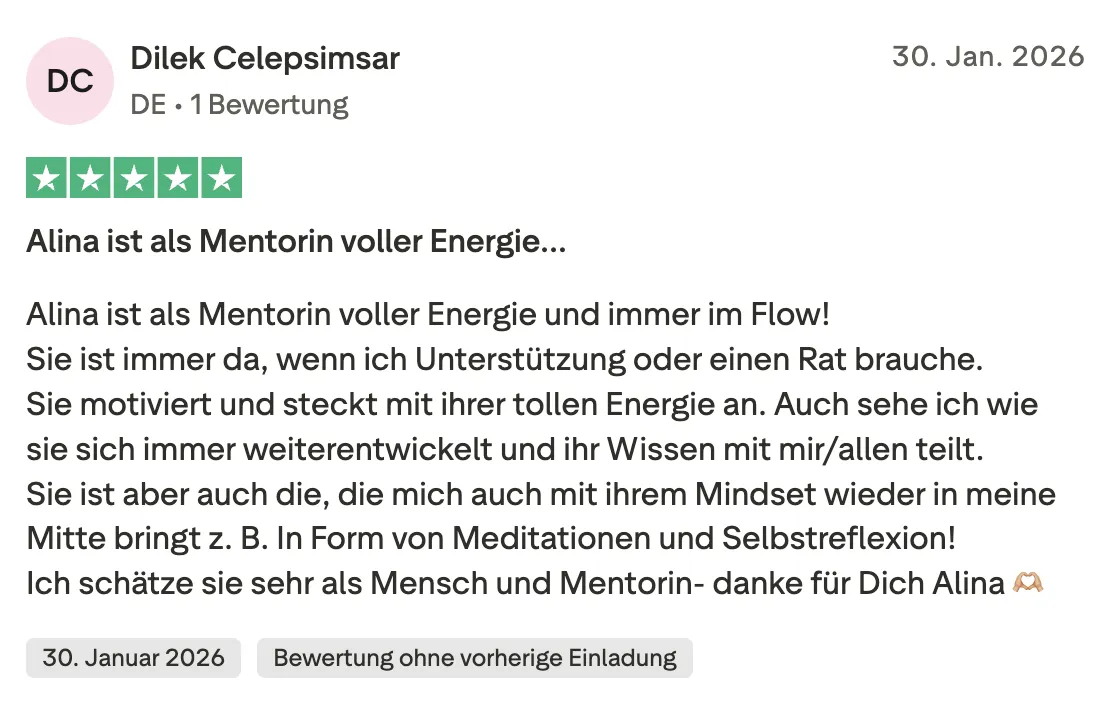 Genau deshalb biete ich heute verschiedene Wege an, immer individuell – je nachdem, wo du gerade stehst und was du brauchst. Manche starten mit Einzelsessions für tolle Impulse und manche entscheiden sich für ein 1:1-Mentoring mit Lebenstransformation.